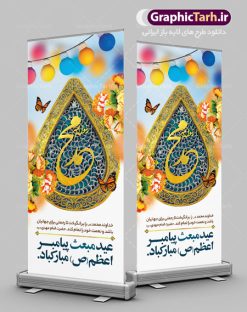 طرح اطلاعیه لایه باز جشن عید مبعث با پس زمینه گل