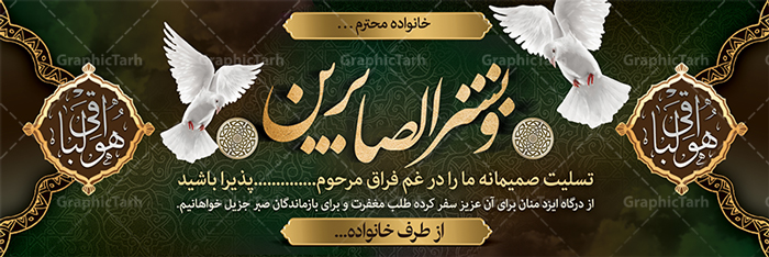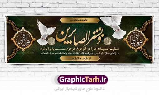 - فایل بنر تسلیت در ابعاد لارج 3 در 1 متر با رزولوشن 72 از سایت گرافیک طرح قابل دانلود می باشد.
