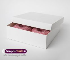 دانلود طرح لایه باز موکاپ بسته بندی جعبه شیرینی ، دونات و کیک