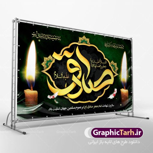 نمونه طرح بنر پشت منبری لایه باز شهادت امام جعفر صادق (علیه السلام)