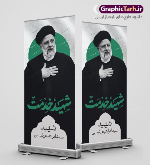 فایل لایه باز بنر استند شهادت رئیس جمهور آیت الله شهید سید ابراهیم رئیسی شهید خدمت