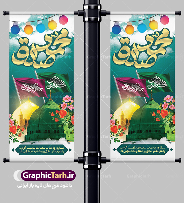 نمونه طرح بنر ایستاده تبریک میلاد پیامبر (ص) و امام جعفر صادق
