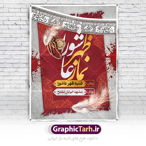 دانلود نمونه طرح لایه باز بنر psd اطلاع رسانی مراسم اقامه نماز ظهر عاشورا و پوستر خام اطلاعیه عاشورا