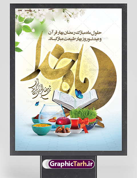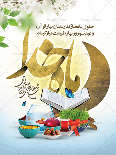 - فایل پلاکارد تبریک عید نوروز و ماه رمضان مناسب برای تبریک سال نو و حلول ماه مبارک رمضان