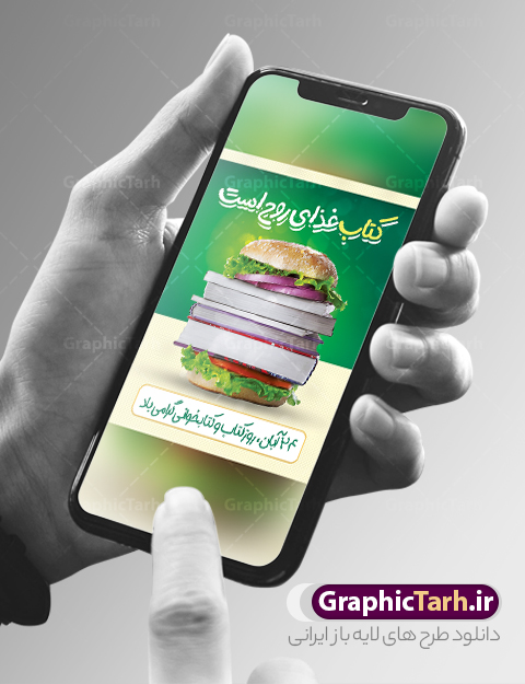 - همانطور که مشاهده می کنید نمونه طرح مفهومی هفته کتاب و کتابخوانی دارای تصویر کتاب و خوشنویسی کتاب غذای روح است می باشد.