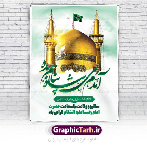 - نمونه فایل طرح ولادت حضرت علی ابن موسی الرضا با فرمت PSD در نرم افزار فتوشاپ با قابلیت تغییر سایز است.