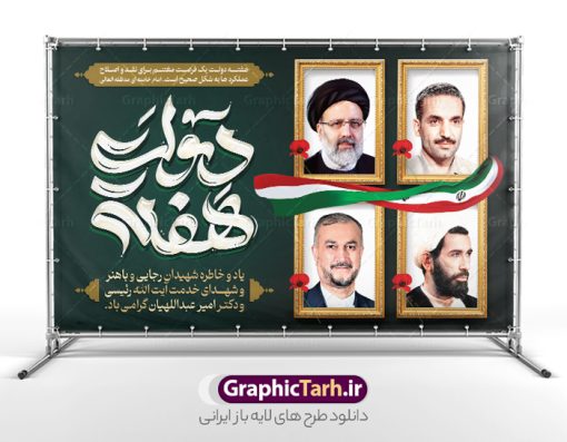 نمونه طرح لایه باز بنر جایگاه هفته دولت با تصویر شهدای خدمت