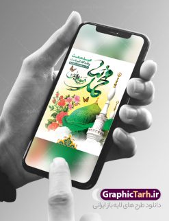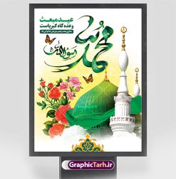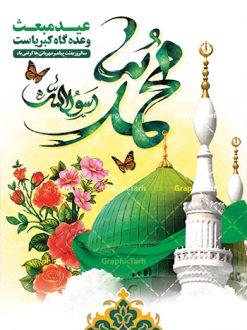 - نمونه طرح تبریک عید مبعث در ابعاد 3 در 4 متر و به صورت عمودی آماده شده است که از سایت گرافیک طرح قابل دانلود می باشد.