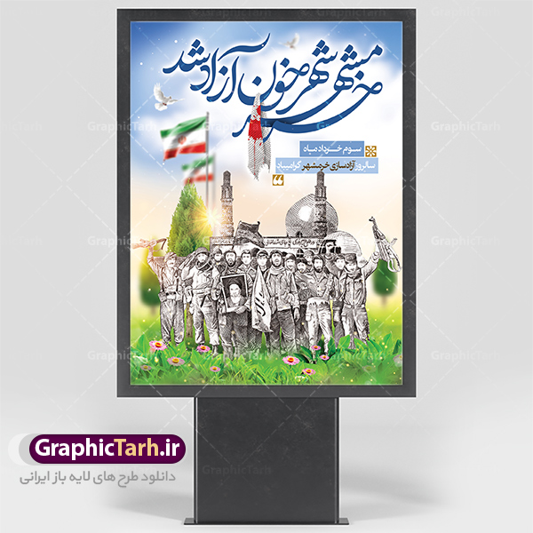 - فایل پوستر روز فتح خرمشهر با فرمت PSD در نرم افزار فتوشاپ با قابلیت تغییر سایز است.