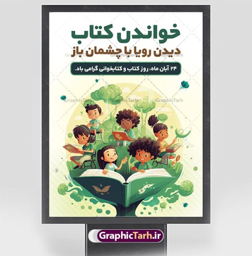 - پس زمینه فایل طراحی پوستر روز کتابخوانی سبز و رنگبدی تصویر روشن می باشد.