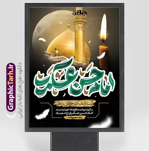 فایل لایه باز بنر سالروز شهادت حضرت امام حسن عسکری (ع) با تایپوگرافی و قابلیت ویرایش