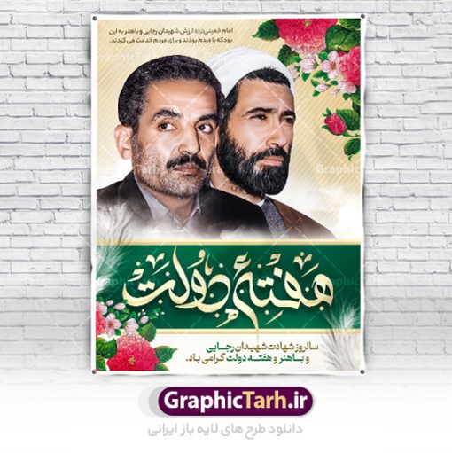 دانلود فایل طرح لایه باز بنر تبریک هفته دولت و پوستر 2 شهریور سالروز شهادت شهید رجایی و باهنر
