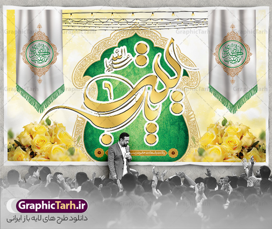 فایل بنر جایگاه ولادت حضرت زینب کبری psd,طرح بنر جشن پشت سن میلاد زینب کبری,طرح لایه باز بنر پشت سن میلاد حضرت زینب,طرح پوستر میلاد حضرت زینب,دانلود بنر میلاد حضرت زینب,طرح بنر اطلاعیه میلاد حضرت زینب