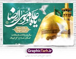 - نمونه فایل طرح ولادت حضرت علی ابن موسی الرضا با فرمت PSD در نرم افزار فتوشاپ با قابلیت تغییر سایز است.