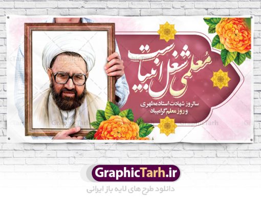 دانلود فایل طرح لایه باز پلاکارد روز معلم و بنر تبریک 12 اردیبهشت سالروز گرامیداشت شهید استاد مرتضی مطهری