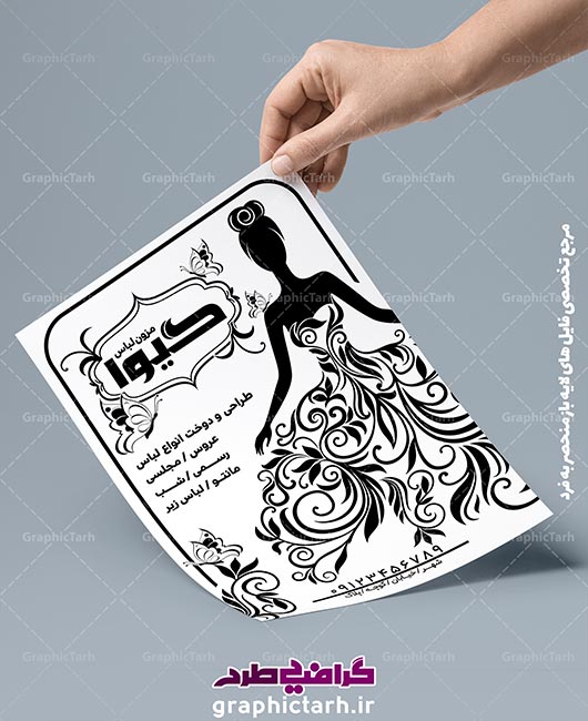 - بصورت سیاه و سفید و مناسب برای تبلیغات خیاطی ها ، مزون و همچنین فروشگاه های عرضه پوشاک و مانتو .