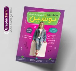 - تراکت پوشاک بچه گانه مناسب برای تبلیغات فروشگاه لباس کودک و پوشاگ بچگانه
