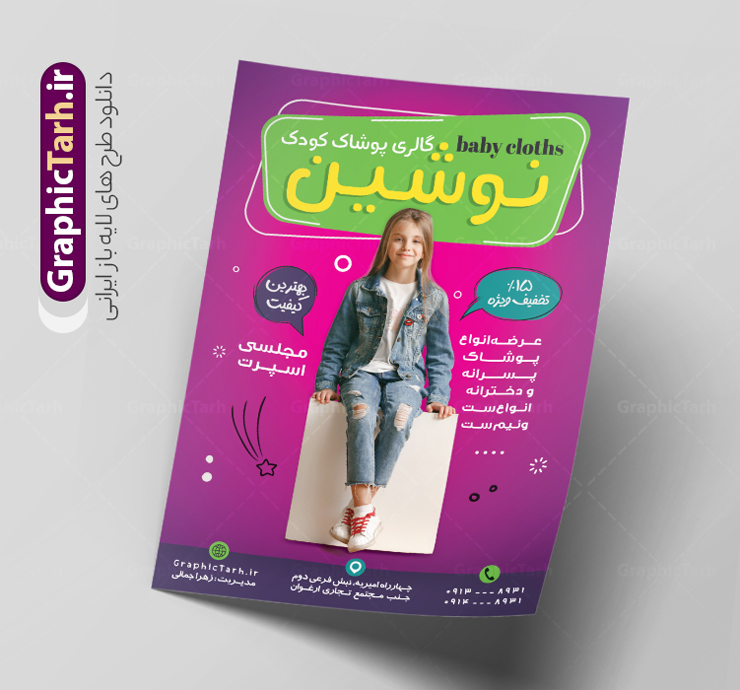 - شما می توانید با خرید اشتراک نمونه طرح تراکت فروشگاه لباس فروشی کودک را بصورت رایگان و با کیفیت اصلی دانلود کنید.