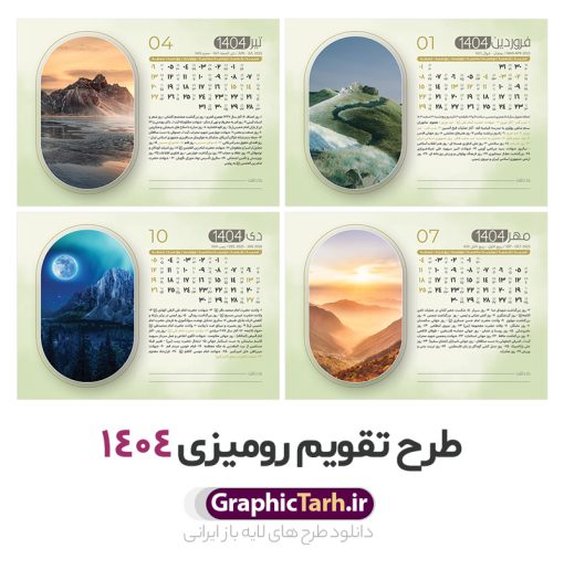 تقویم رومیزی 1404 طرح طبیعت شامل 12 فایل psd و جلد