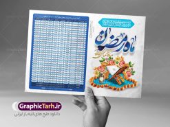 فایل طرح جدول اوقات شرعی ماه رمضان به افق شهر های ایران لایه باز و قابل ویرایش