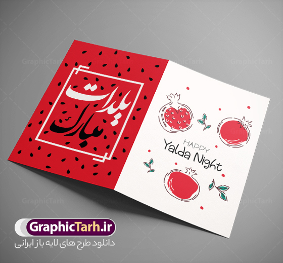 فایل لایه باز کارت تبریک شب چله در ابعاد استاندارد A4 و با رزولوشن 300 از سایت گرافیک طرح قابل دانلود می باشد.