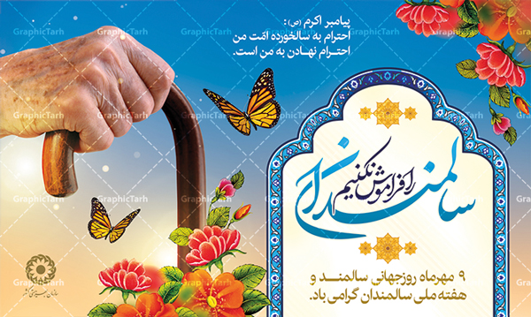 دانلود فایل طرح لایه باز بنر پلاکارد روز جهانی سالمند و پوستر طراحی تبریک 9 مهر هفته ملی سالمندان