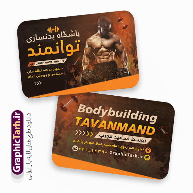 - کارت ویزیت بدنسازی با طراحی بسیار زیبا از سایت گرافیک طرح قابل دانلود می باشد.
