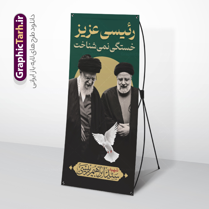 - فایل بنر ایستاده مراسم شهید رئیسی در ابعاد لارج 200 در 90 سانتیمتر و با رزولوشن 72 و از سایت گرافیک طرح قابل دانلود می باشد.
