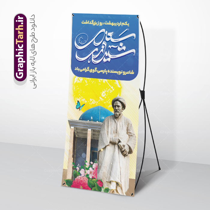- فایل بنر استند سعدی شیرازی مناسب برای روز اول اردیبهشت و بزرگداشت سعدی