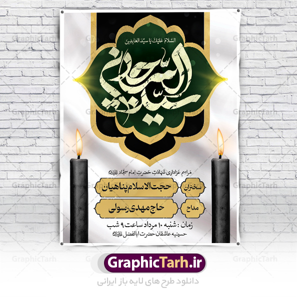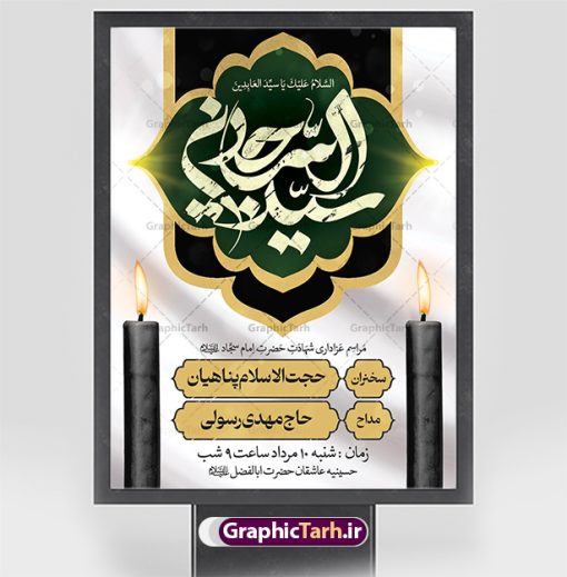 - از این طرح پوستر زیبا می توانید برای چاپ اطلاعیه مراسم شهادت امام سجاد استفاده کنید.