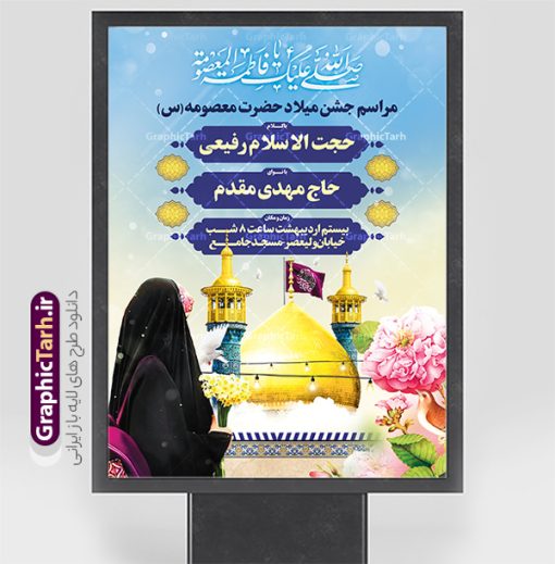 طرح بنر اطلاعیه جشن ولادت حضرت فاطمه معصومه (س) و روز دختر