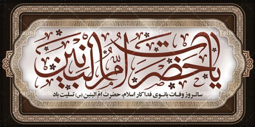 بنر استند شهادت حضرت ام البنین , پوستر افقی وفات حضرت ام البنین , بنر رحلت حضرت ام البنین , حضرت ام البنین (س) , بنر تسلیت حضرت ام البنین (س), متن وفات حضرت ام البنین (س) ,تایپوگرافی حضرت ام البنین , کادر تذهیب , بنر مناسبتی,طرح بنر تکریم از مادر و همسر شهدا,بنر تکریم مادر شهید,پوستر رحلت حضرت ام البنین