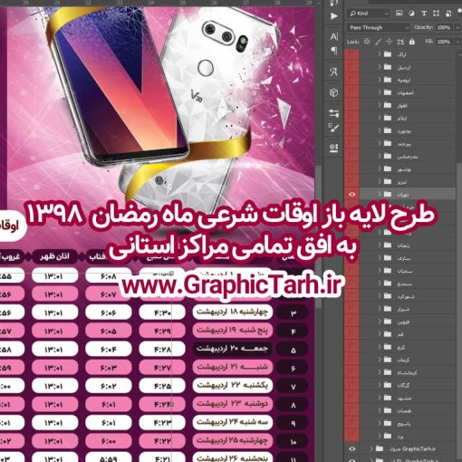 - طرح جدول اوقات شرعی رمضان لایه باز و قابل ویرایش با فرمت PSD در نرم افزار فتوشاپ است.