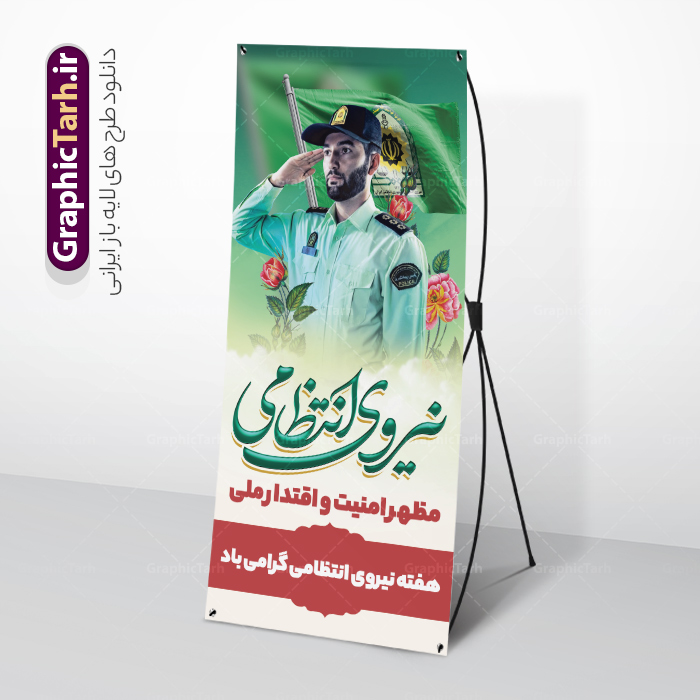 فایل بنر استند هفته نیروی انتظامی با خوشنویسی تبریک روز نیروی انتظامی لایه باز و قابل ویرایش
