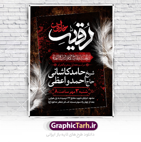 - طراحی پلاکارد اطلاعیه مناسب برای اطلاع رسانی مراسم عزاداری در هیئت ها و … میباشد.