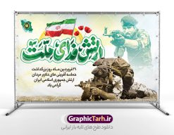 فایل لایه باز طرح افقی روز ارتش جمهوری اسلامی ایران با خوشنویسی ارتش فدای ملت