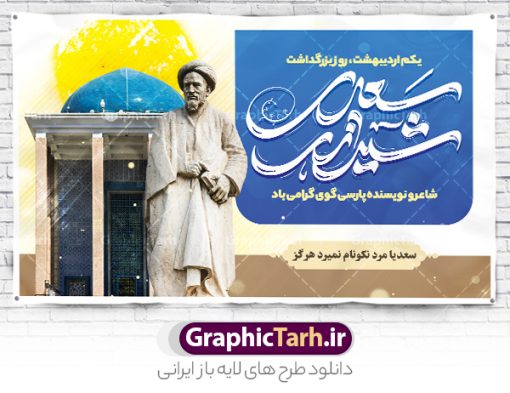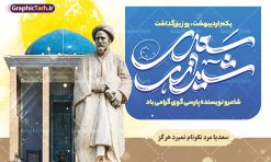 دانلود طرح لایه باز بنر افقی تبریک 1 اردیبهشت روز بزرگداشت سعدی و پوستر تایپوگرافی سعدی شیرازی