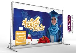 - بنر گرامیداشت روز دانشجو مناسب چاپ و نصب پشت سن مراسم گرامیداشت روز دانشجو است.