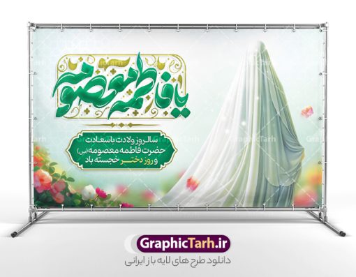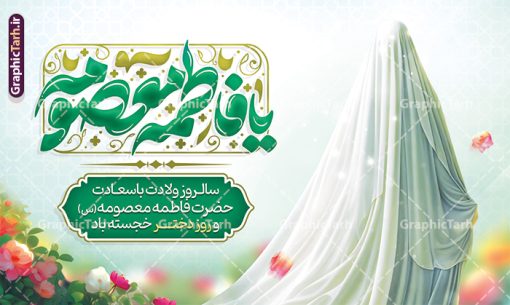 دانلود طرح لایه باز بنر تبریک میلاد حضرت فاطمه معصومه (س) و پوستر افقی روز دختر با تایپوگرافی یا فاطمه معصومه