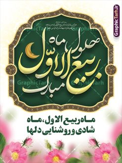 - از این طرح زیبا می توانید برای چاپ بنر و پوستر حلول ماه ربیع الاول استفاده کنید.