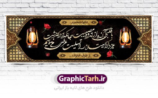 - فایل بنر تسلیت در ابعاد لارج 3 در 1 متر با رزولوشن 72 از سایت گرافیک طرح قابل دانلود می باشد.