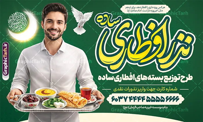 طرح بنر خام نذر افطار ماه مبارک رمضان با عکس افطاری ساده