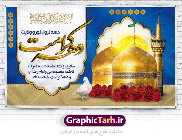 - از طرح زیبای دهه کرامت می توانید برای چاپ سالروز ولادت حضرت معصومه (س) و امام رضا (ع) استفاده کنید.