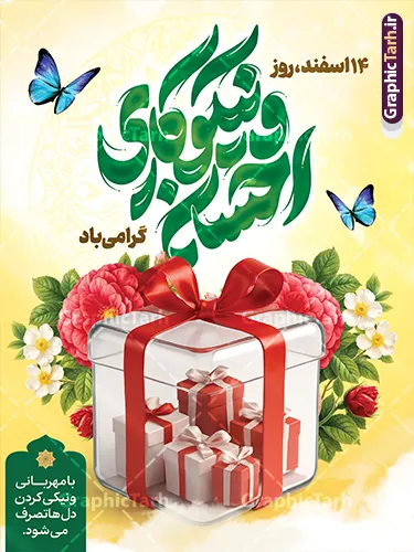 طرح بنر روز احسان و نیکوکاری با تایپوگرافی و عکس هدیه