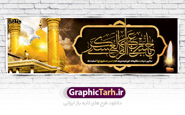 - فایل طرح بنر فرا رسیدن سالروز شهادت امام عسکری (ع) در ابعاد لارج 3 در 1 متر با رزولوشن 72 مناسب نصب مراسم عزاداری ، از سایت گرافیک طرح قابل دانلود می باشد.