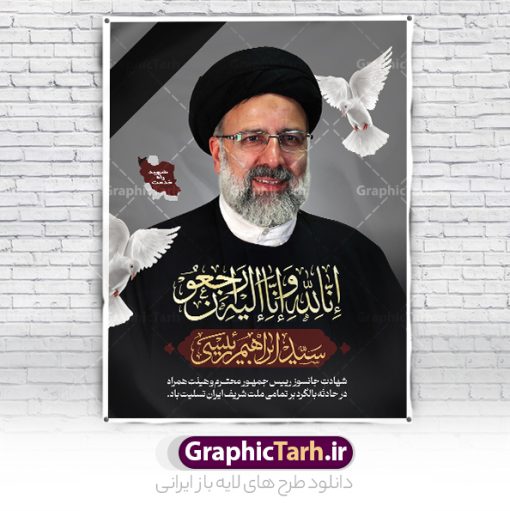 طرح بنر لایه باز شهادت حجت الاسلام ابراهیم رئیسی در حادثه سقوط بالگرد ریاست جمهوری