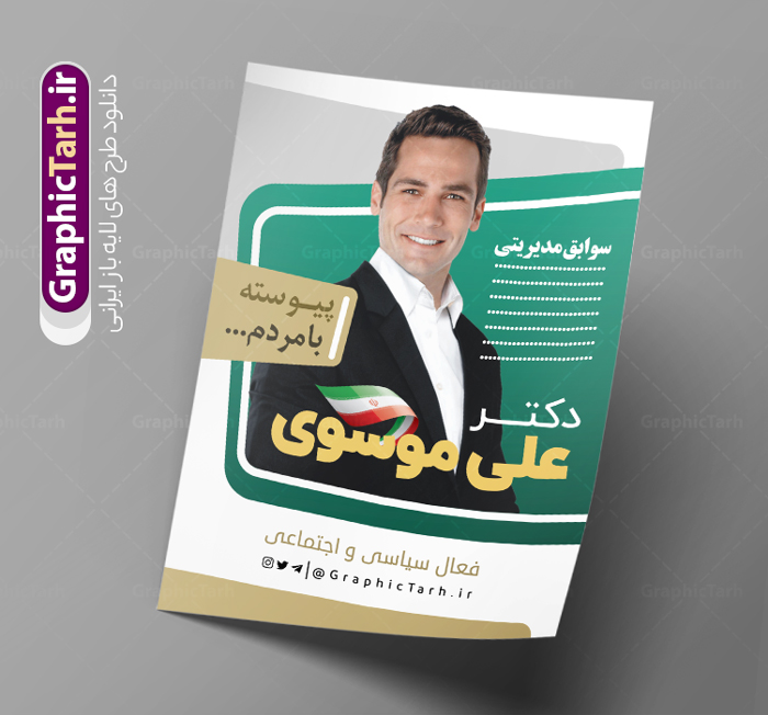 - فایل لایه باز پوستر کاندیدای انتخابات در ابعاد 30 در 40 سانتی متر و با رزولوشن 300 از سایت گرافیک طرح قابل دانلود می باشد.