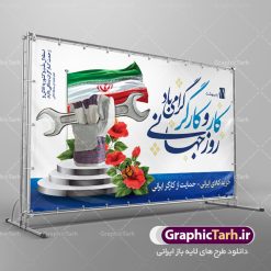 - فایل بنر روز کارگر در ابعاد لارج 5 در 3 متر با رزولوشن 72 مناسب نصب بروی اسپیس های تبلیغاتی ، از سایت گرافیک طرح قابل دانلود می باشد.