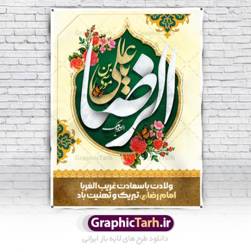 دانلود فایل طرح لایه باز بنر تبریک میلاد حضرت امام رضا (ع) و پوستر تایپوگرافی ولادت امام رضا