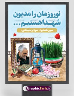 دانلود طرح لایه باز بنر تبریک عید نوروز شهدایی با تصویر سردار سلیمانی
